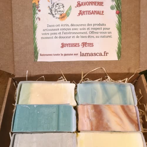 Offrez ou offrez-vous un moment de douceur avec ce coffret cadeau de savons artisanaux naturels et bio, réunissant mes six recettes de savons fabriqués par saponification à froid.